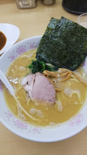 ラーメン(´ω`) 今回は新潟市の正味 正味ラーメン 太麺、味濃いめ、油多め(´ω`) 海苔、ほうれん草、家系です(´ω`) ツルツル太麺(^-^) こってり豚骨スープ、癖になる(´ω`) たれかつカレー ミニ って全然ミニじゃない(^-^)注文時迷ったが、ミニにしといて良…